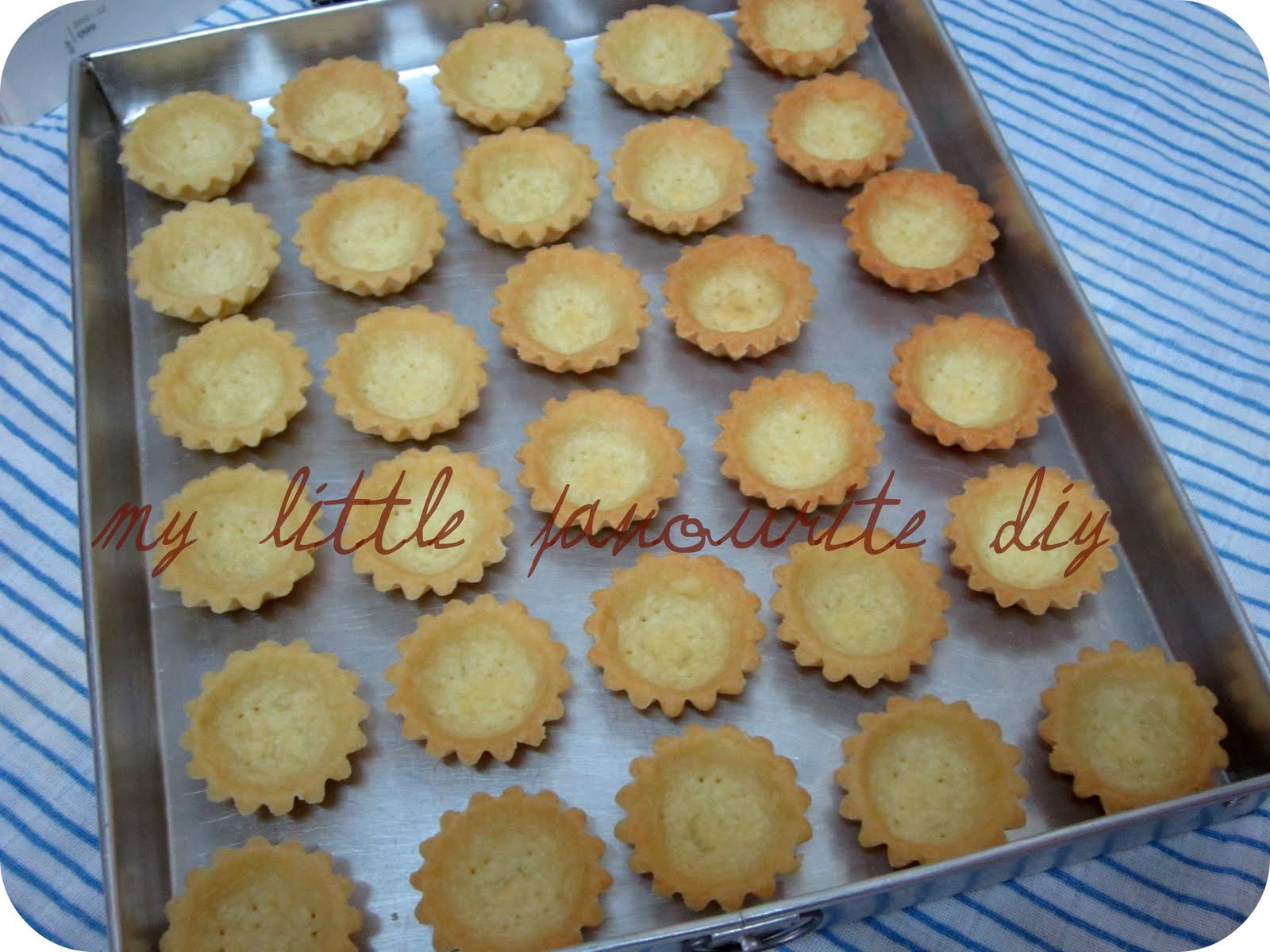 4) Take out the dough and divide into small portions. Mould the doughs into each pastry tart cases.